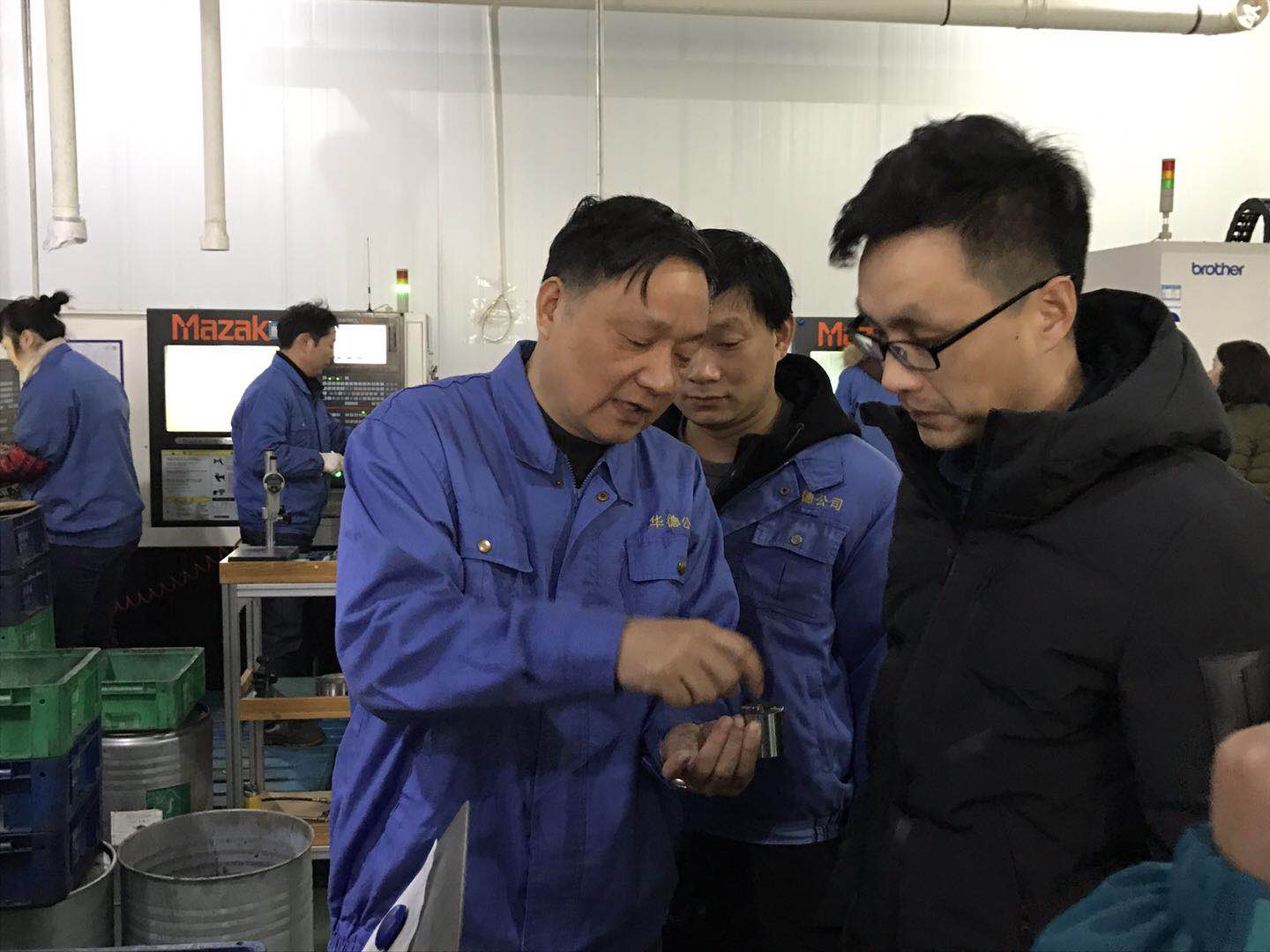 公司董事長鄒德華、總經理鄒育文等陪同鄭院長一行分別來到公司成型精整車間、燒結車間、壓配車間和大樓工程中心進行參觀,考察進站研究生的工作學習場地。公司董事長鄒德華同志就公司目前生產情況以及在科技創(chuàng)新方面的成就、與高校的產學研合作成果、企業(yè)內部管理模式的革新方面以及公司的目標、大力推進精益生產管理模式、5S管理模式、通過“機器換人”推進智能制造發(fā)展和公司企業(yè)文化建設、黨建工作情況等一一向鄭院長一行作詳細現(xiàn)場介紹。